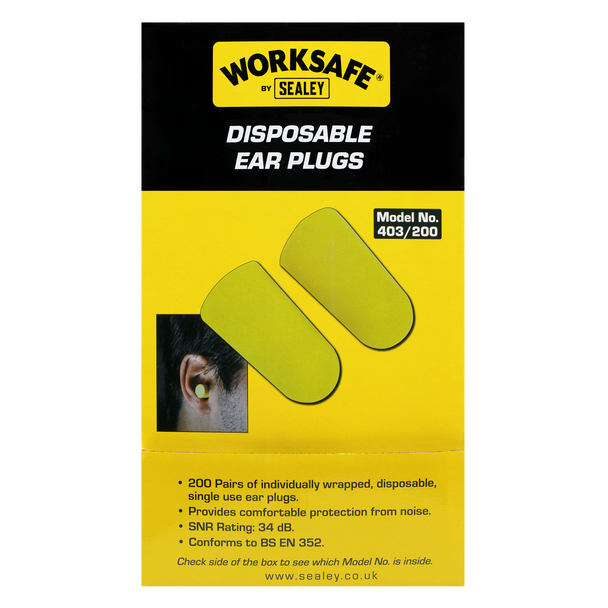 “description”: “Sealey 403/200 | Worksafe Disposable Ear Plugs – 200 Pairs professional workshop product designed for reliable day-to-day use.”,