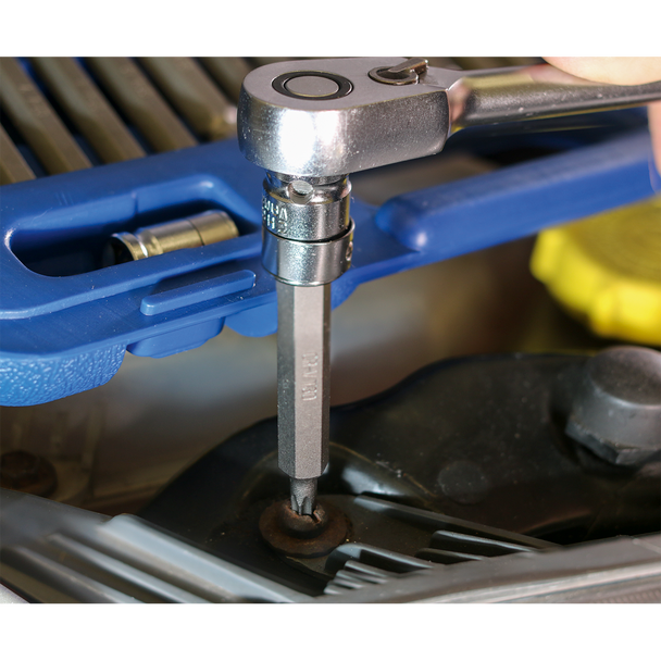 • Set includes 3/8″ and 1/2″Sq drive to 10mm hex Chrome Vanadium steel bit adaptors.