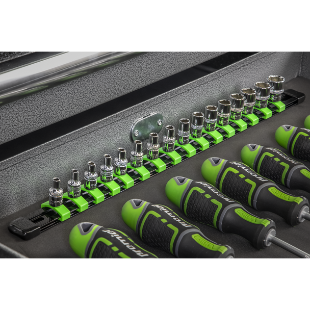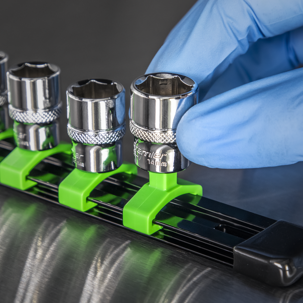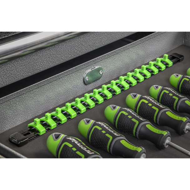 Sealey AK27052HV | Premier Socket Retaining Rail with 16 Clips 1/4″Sq Drive – Hi-Vis Green