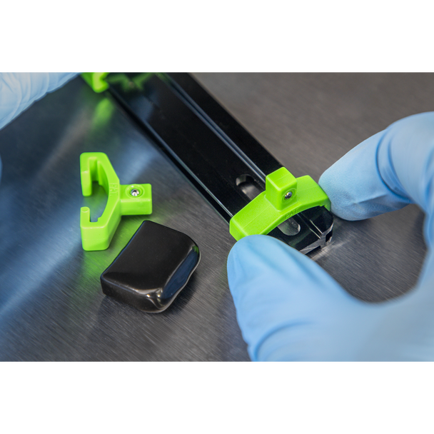 • Aluminium socket rail with high visibility green nylon clips.