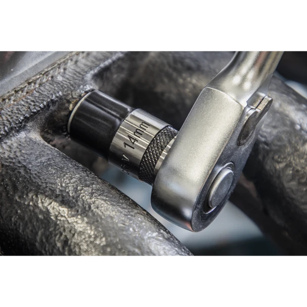 - Includes knurled ring for extra grip with oily fingers