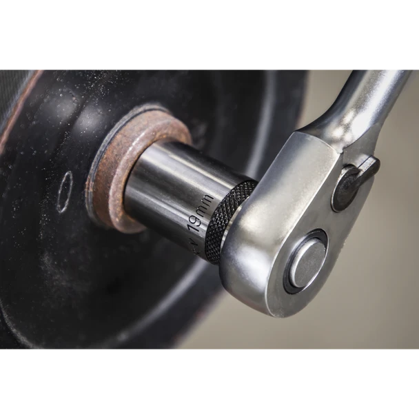 Manufactured from hardened and tempered high grade Chrome Vanadium steel. Fully polished black chrome finish for resistance to corrosion. Features specially machined flutes in the walls of the socket which enable use on up to 85% rounded fasteners. This not only provides added strength but also prevents damage to worn or rusted fixings. Includes knurled ring for extra grip with oily fingers. Supplied on socket rail.
