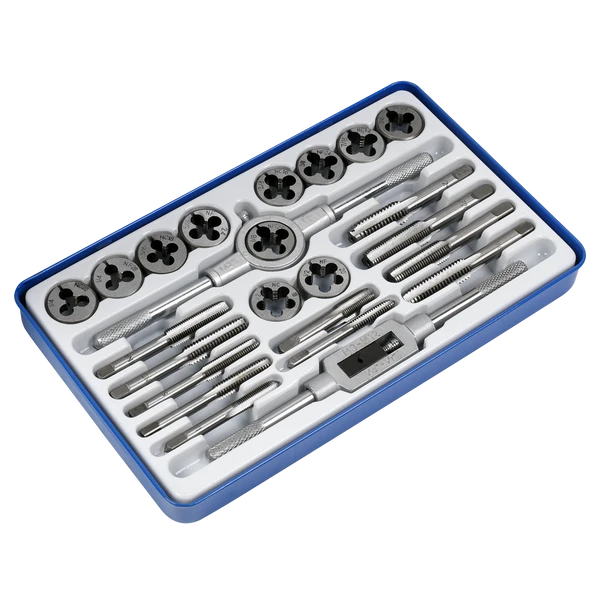 The Sealey AK3024IMP | Imperial Tap & Split Die Set 24pc is designed for dependable professional use. Precision machined, carbon steel taps and dies.