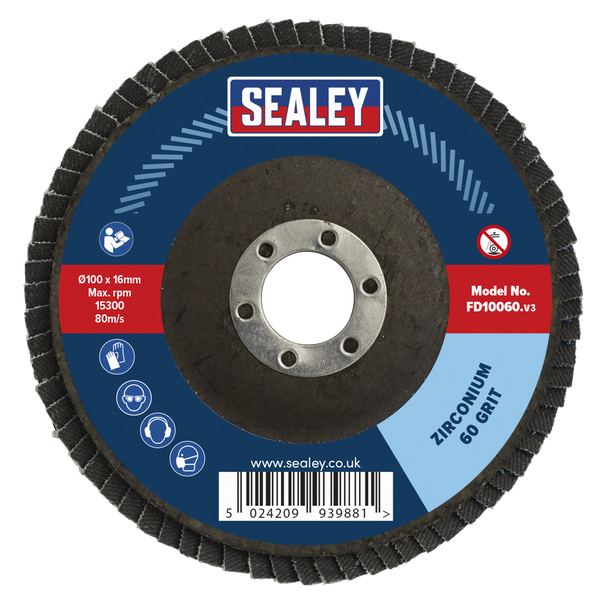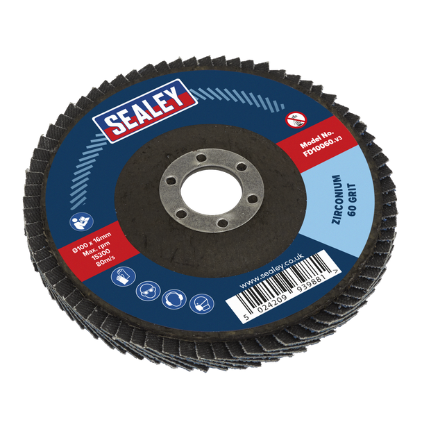 Sealey FD10060 │ 100mm Zirconium Flap Disc 60Grit 16mm Bore