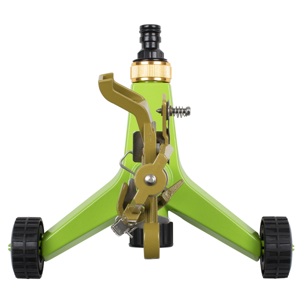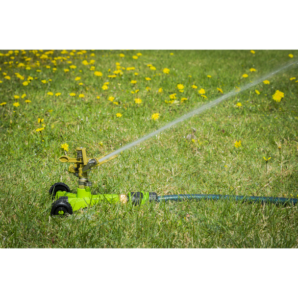 • WHEELED BASE – Fitted with two plastic wheels that keep the sprinkler stable while in use but easy to move and relocate to cover the whole lawn.