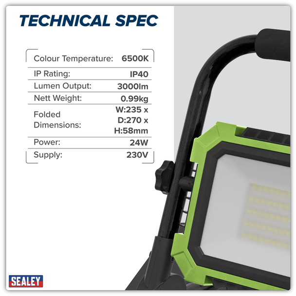 Sealey LED24WL ⏐ Portable Floodlight 24W SMD LED 230V