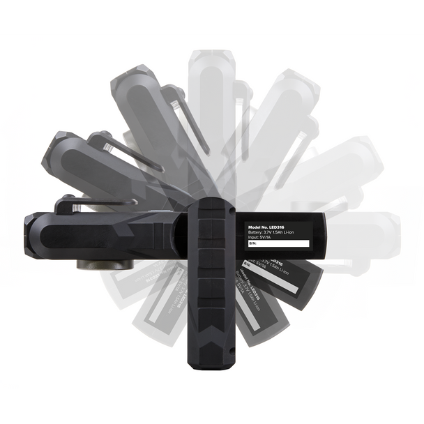 • Also featuring 180° rotational stand, magnet, hook and clip.