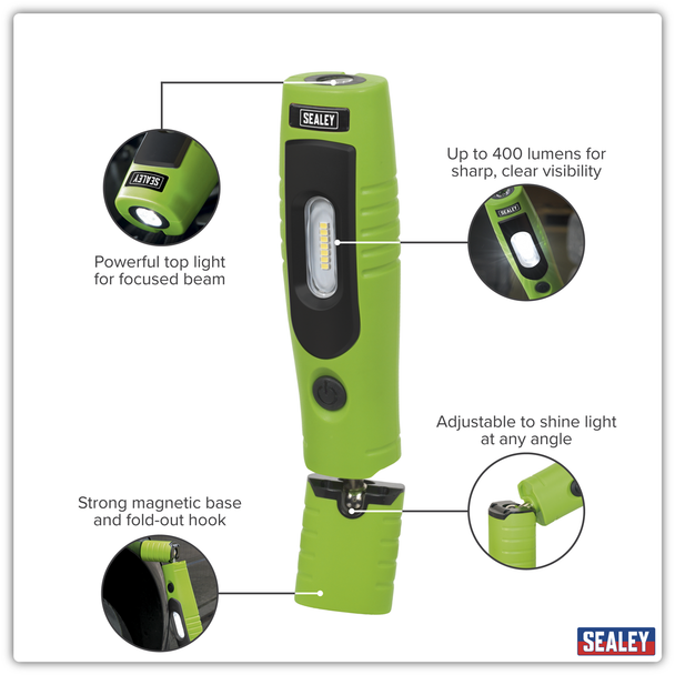 Sealey LED3602G ⏐ Rechargeable 360° Inspection Lamp 4W & 3W SMD LED – Green