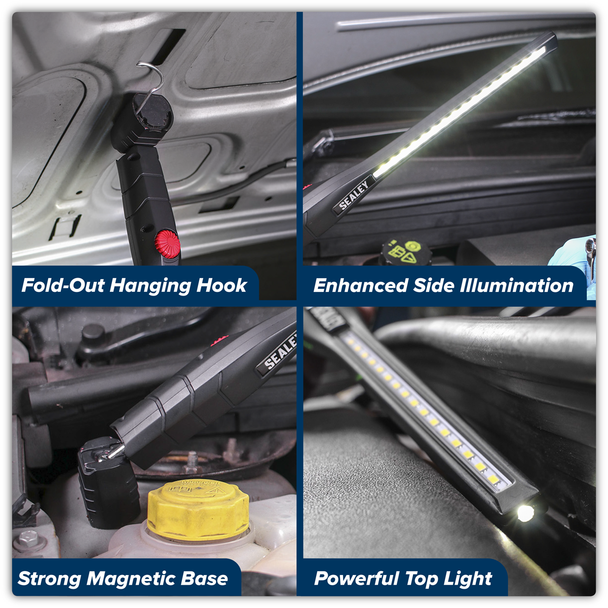 Sealey LED3604 ⏐ Rechargeable 360° Slim Inspection Light 8W & 1W SMD LED – Black