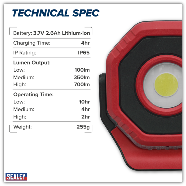 Sealey LED700PR ⏐ Rechargeable 360° Pocket Floodlight with Magnet 7W COB LED – Red