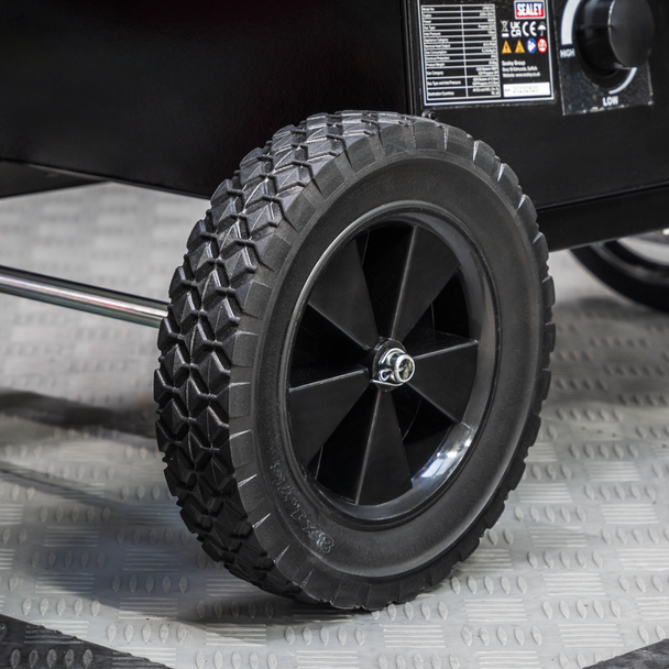 • Mounted on wheels with integral handle, so easily moved to where heating is required.
