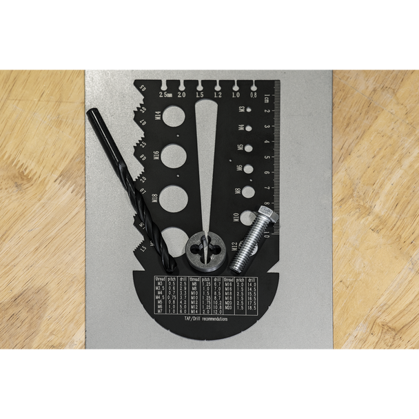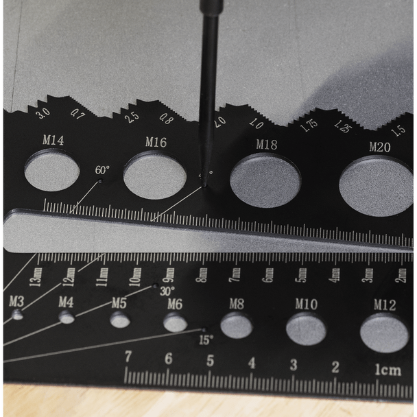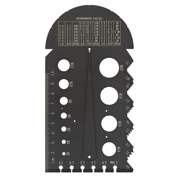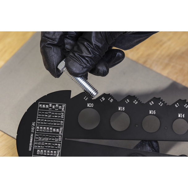 • Stainless steel metric multifunction thread/pitch identification gauge.
