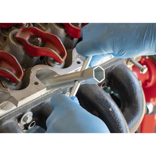 Sealey MS157 ⏐ Long Reach Double End Spark Plug Box Spanner with L-Bar 16/18mm