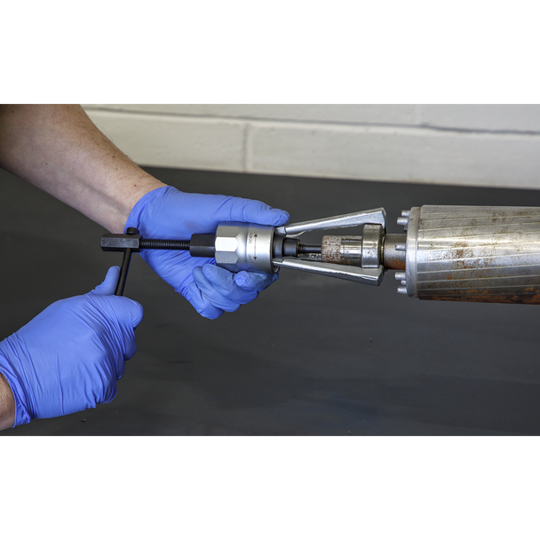 • Spring loaded and drop-forged legs are secured around the bearing or gear by a screw collar to prevent slipping and subsequent damage or injury.