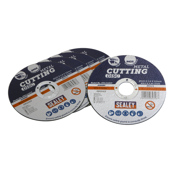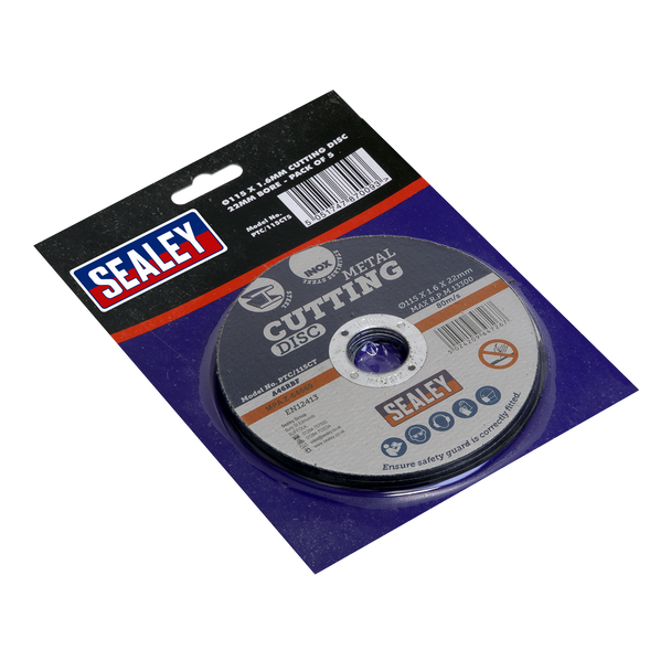 Sealey PTC/115CT5 ⏐ 115 x 1.6mm Cutting Disc 22mm Bore – Pack of 5