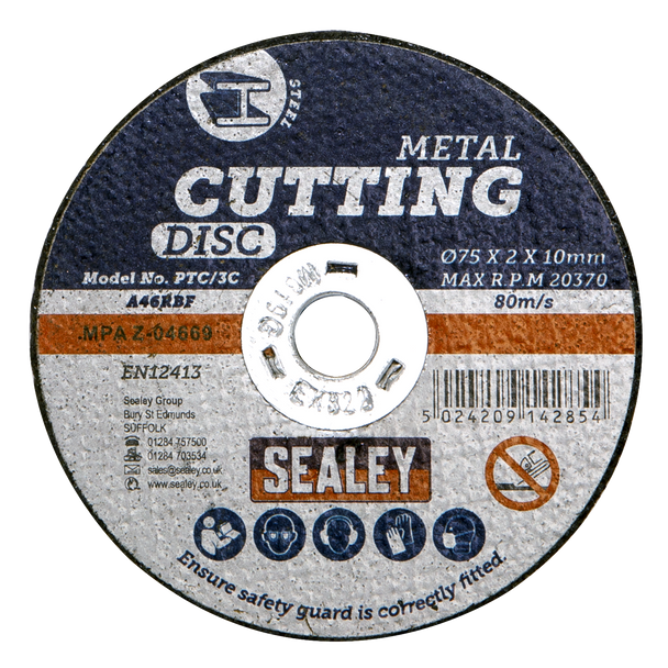 Sealey PTC/3C10 ⏐ 75 x 2mm Cutting Disc 10mm Bore – Pack of 10