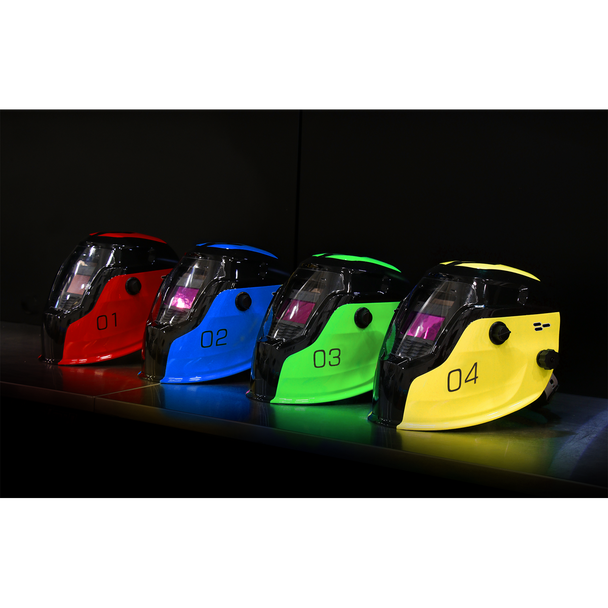 • FULLY AUTOMATIC – Fully automatic switching from light to dark on striking arc. Eyes remain firmly protected with an instant operating time between light & dark standing at 0.04ms. Shade is selected by a rotary knob on side of helmet.