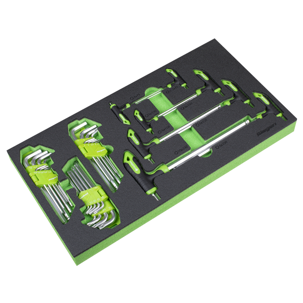 Sealey S01280 ⏐ Siegen T-Handle & Standard Hex/TRX-Star* Key Set with Tool Tray 35pc