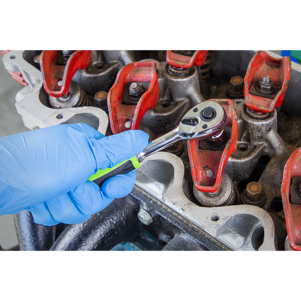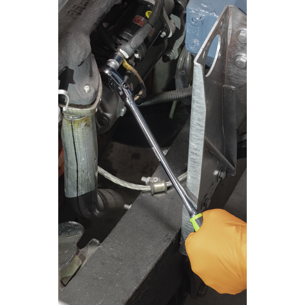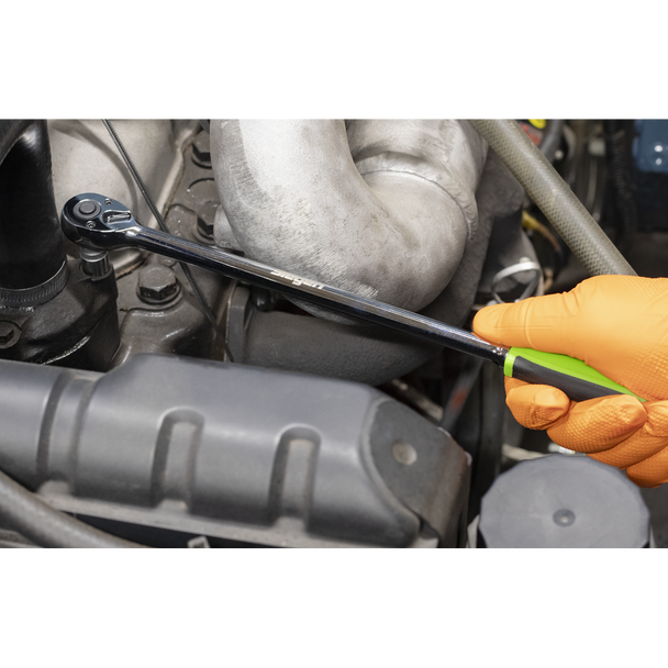• REVERSIBLE RATCHET – Features pear-head with flip reverse, push-button quick release and anti-slip comfort grip.