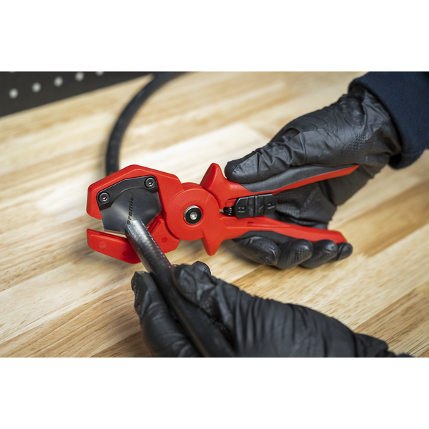 Presenting the Sealey SC129 | Premier Hose Cutter, designed for precision cutting of hoses ranging from 3mm to 32mm in diameter. Engineered with superior craftsmanship and robust materials, this professional-grade tool ensures clean, accurate cuts with minimal effort, making it an essential addition to any workshop or maintenance toolkit.