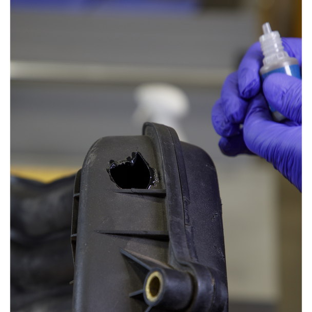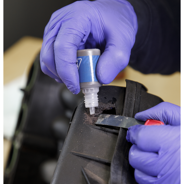 • Two part (adhesive and black filler powder) repair system with unique reinforcing and filling feature.