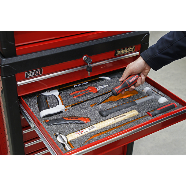 • Bright coloured foam underneath a black top highlights tools for a professional look.