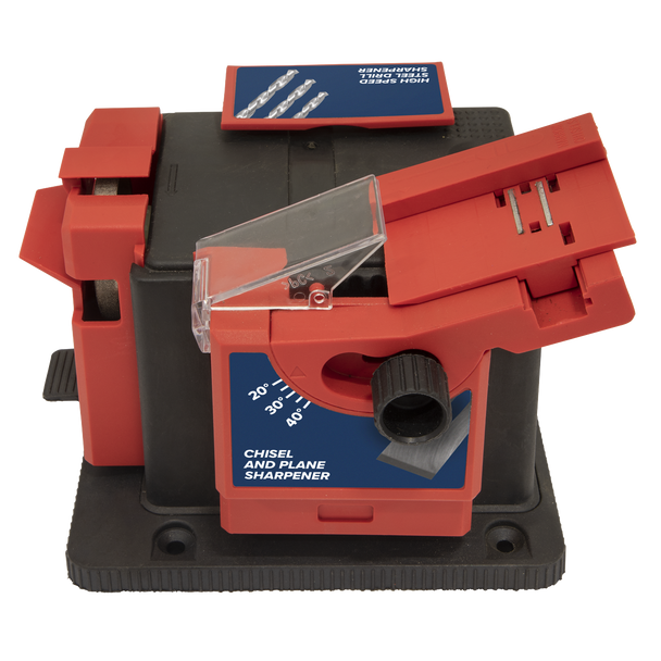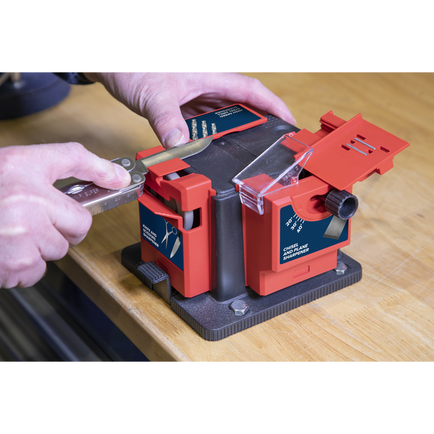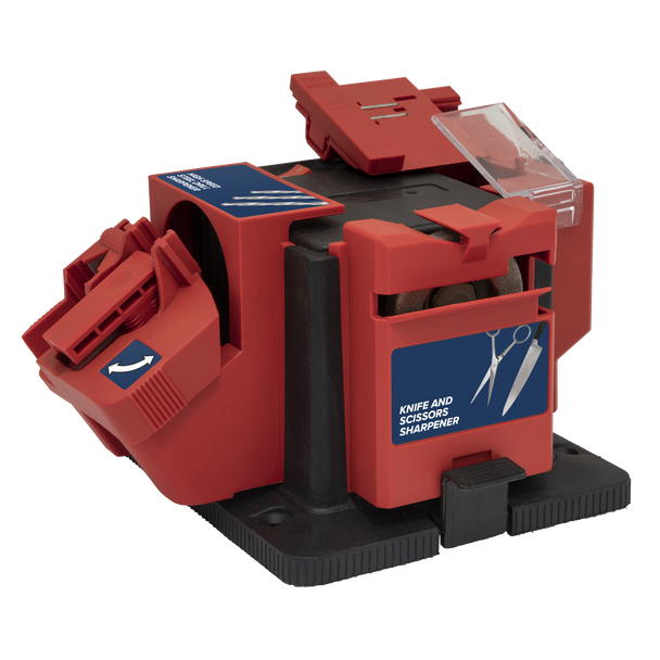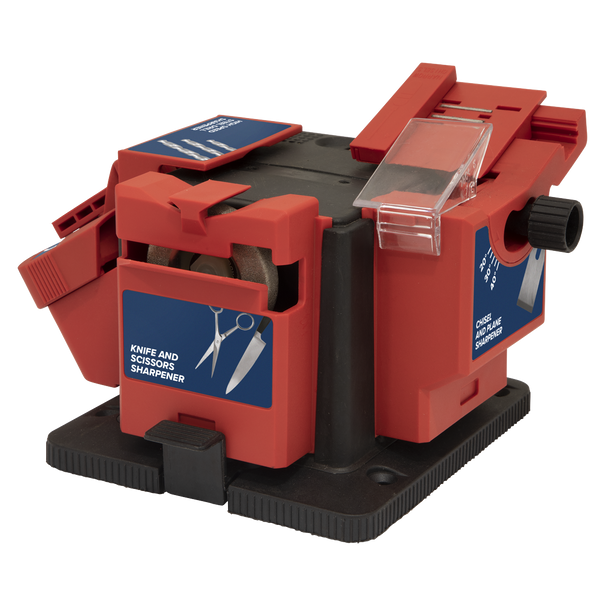 Introducing the Sealey SMS2004, an innovative bench-mounted multipurpose sharpener equipped with a robust 65W motor. This sharpener features dual grinding wheels, allowing you to effortlessly sharpen a wide range of tools, including knives, chisels, and scissors, ensuring optimal performance and longevity. With its adjustable angle settings and built-in safety guard, the Sealey SMS2004 guarantees precision and user safety, making it an indispensable tool for both DIY enthusiasts and professional craftsmen alike. Its compact design fits seamlessly into any workspace, elevating your sharpening experience to new heights.