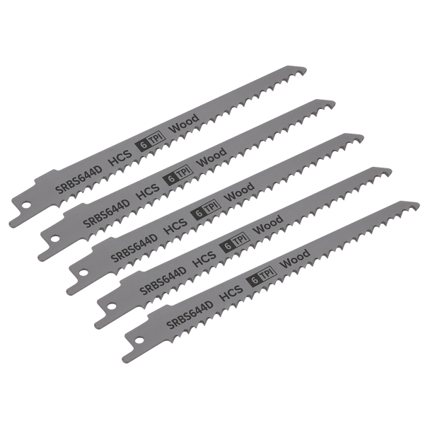 Sealey SRBS644D ⏐ Reciprocating Saw Blade for Clean Wood 150mm 6tpi – Pack of 5