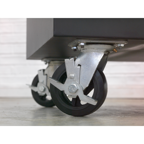 • Includes a set of four Ø125mm heavy-duty castor wheels, two of which are locking.