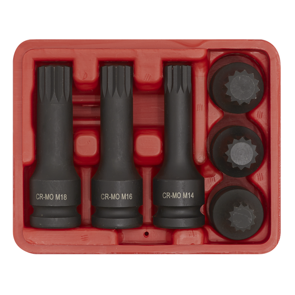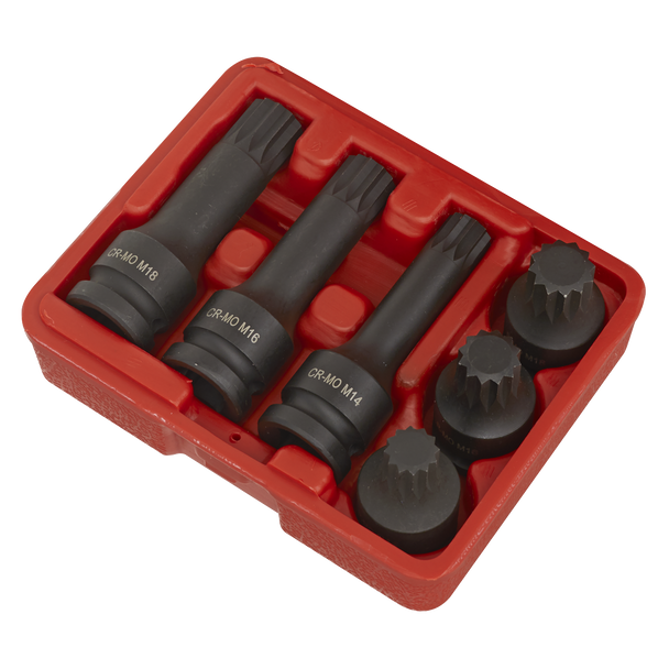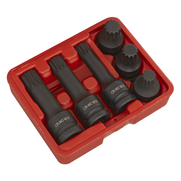 Sealey SX052 ⏐ Impact Spline Socket Bit Set 1/2"Sq Drive 6pcSealey SX052 ⏐ Impact Spline Socket Bit Set 1/2″Sq Drive 6pc