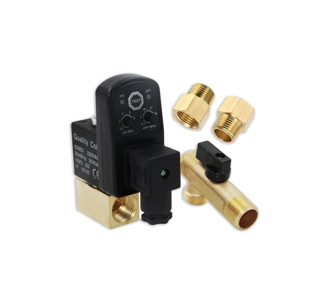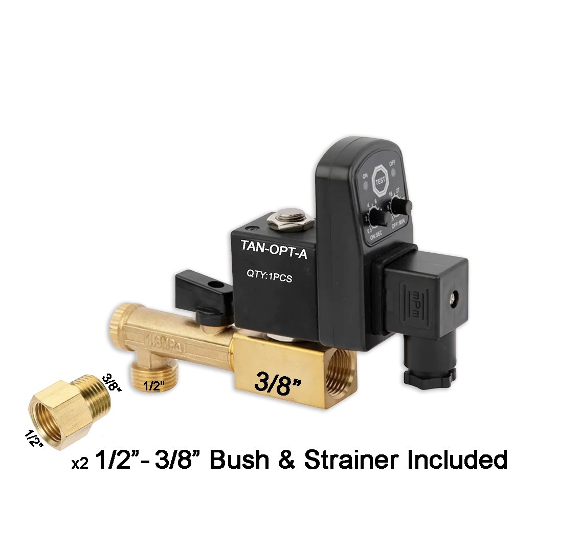 TAN-OPT-A | 3/8 or 1/2″ Automatic Solenoid Timer Controlled Drain (Bush & Strainer Included)