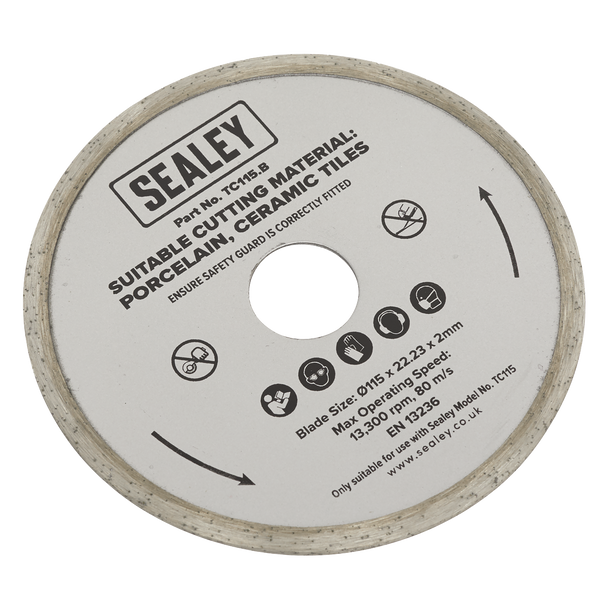 • EXACT FIT – Designed specifically for the Sealey TC115 portable tile cutter, the TC115.B replacement blade matches the original precisely with its Ø115 mm diameter and Ø22.23 mm bore.