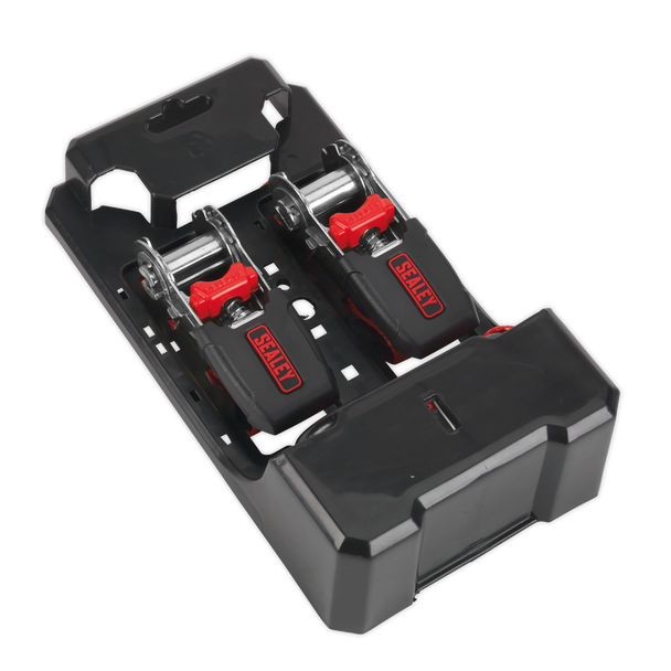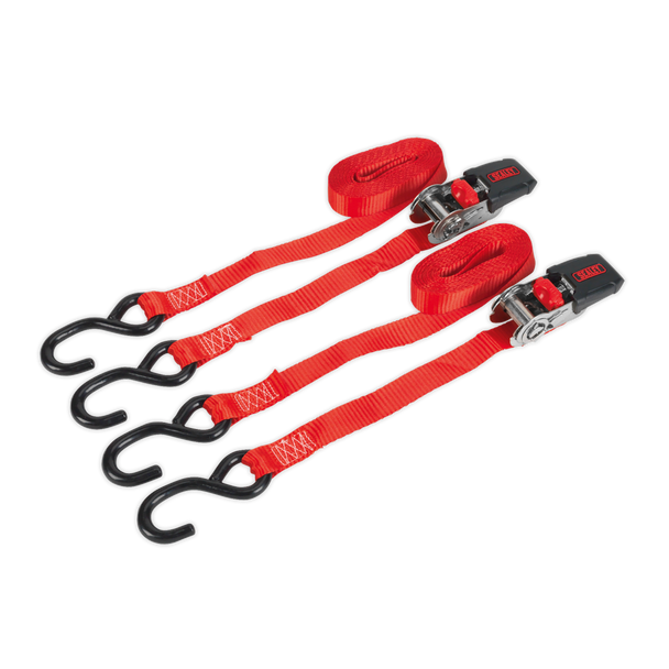 Sealey TD284SD ⏐ Ratchet Straps Polyester Webbing with S-Hooks 25mm x 4m 800kg Breaking Strength – Pair