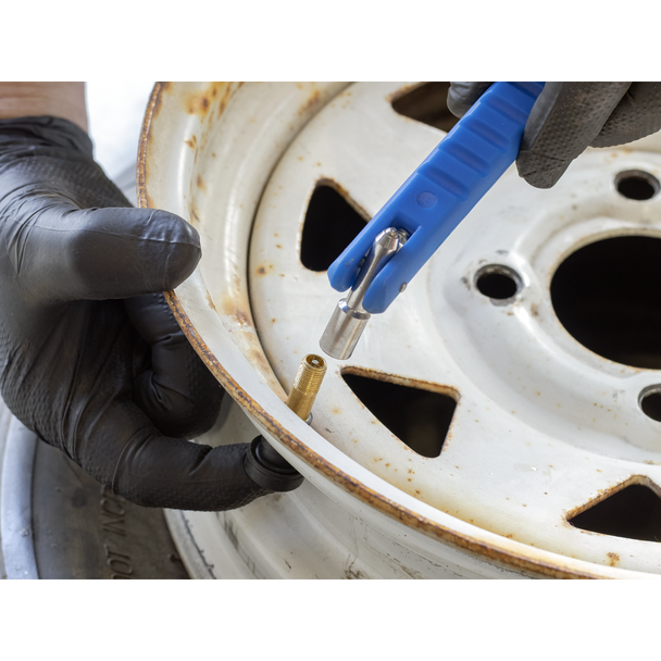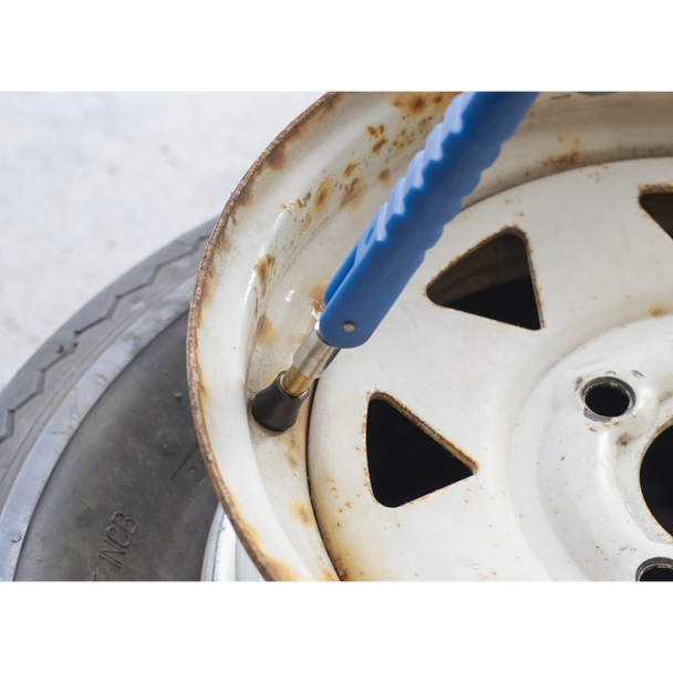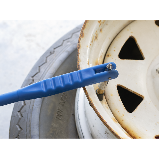 • Features a valve core removal tool mounted in the base of the handle.
