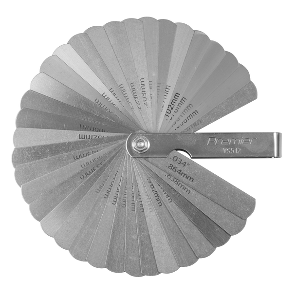 Introducing the Sealey VS512 ⏐ Premier Dual Marked Feeler Gauge, featuring a comprehensive set of 35 precision blades designed for accurate measurements. This high-quality tool is ideal for automotive and mechanical applications, allowing users to assess gaps and alignments with ease. Each blade is dual-marked for quick identification in both metric and imperial sizes, ensuring versatility and convenience. Crafted from durable materials, the feeler gauge ensures longevity and reliability in various working conditions. Perfect for professionals and DIY enthusiasts alike, the Sealey VS512 is an essential addition to any toolbox.
