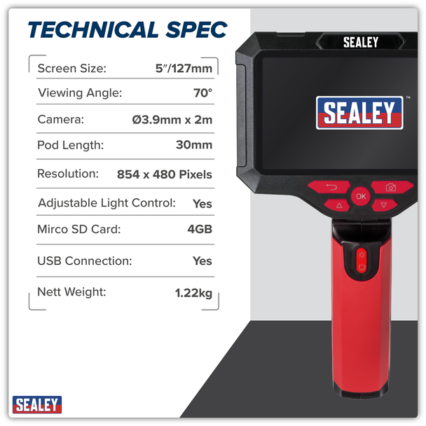 Sealey VS8117 ⏐ Video Borescope 3.9mm Camera & 5″ Screen