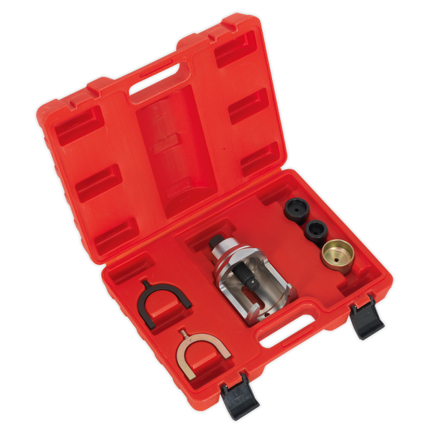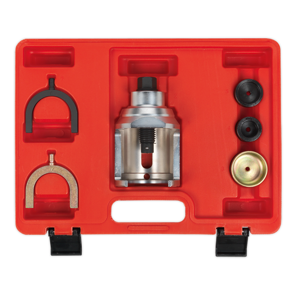 Introducing the Sealey VSE725 ⏐ Front Axle Upper Ball Joint Extractor/Installer, specifically designed for use with the VW T4 model. This high-quality tool is engineered to facilitate the safe and efficient removal and installation of front axle upper ball joints, ensuring precision and durability during automotive repairs. Constructed from robust materials, the Sealey VSE725 offers a reliable solution for both professional mechanics and DIY enthusiasts, enhancing productivity while minimizing the risk of damage to suspension components. Its user-friendly design allows for easy handling and manoeuvrability in tight spaces, making it an essential addition to any automotive toolkit.