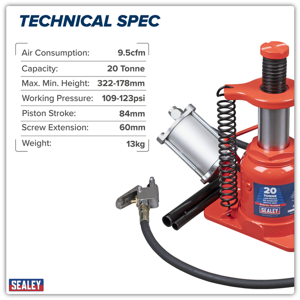 Sealey YAJ20SLE ⏐ Low Profile Air Operated Hydraulic Bottle Jack 20 Tonne