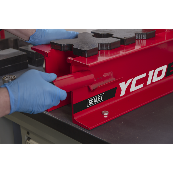 Presenting the Sealey YC10B Hydraulic Press, a robust 10-tonne bench-mounted ‘C’ type design engineered for precision and durability. This high-performance tool is ideal for a variety of pressing applications, from automotive repairs to industrial tasks, offering exceptional control and reliability. Built with a sturdy frame and designed for ease of use, the Sealey YC10B ensures efficient operation while maintaining safety standards, making it a valuable addition to any workshop or professional setting.