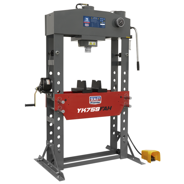 Sealey YK759FAH ⏐ Premier Air/Hydraulic Floor Type Press with Foot Pedal 75 Tonne