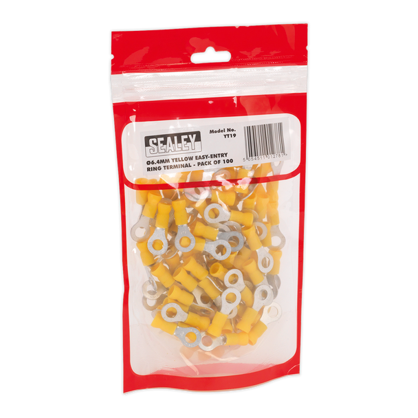 Sealey YT19 ⏐ Easy-Entry Ring Terminal 6.4mm (1/4″), Yellow – Pack of 100